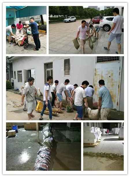 7月5日晚,暴雨如期而至。因此前已制訂詳細預案,從防汛物資到人員動員各方面做了充分準備,所有重要物料均已在暴雨來臨前轉(zhuǎn)移至高處,公司大樓和設備廠房前也已壘起層層沙袋。7月6日清晨6點,公司總經(jīng)理鄧家科冒著暴雨涉水來到公司,帶領數(shù)十名員工現(xiàn)場組織防汛抗洪。